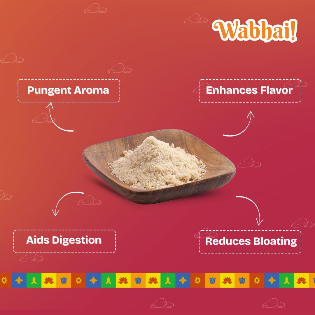 Enhance your dishes with the pungent and aromatic flavor of hing powder from Wabhai Foods. This essential spice, also known as asafetida ground, is celebrated for its distinctive aroma and savory taste. Perfect for adding depth to Indian curries, lentils, and vegetable dishes, it also offers digestive benefits and helps reduce bloating. Packaged in a 20g pack, Wabhai Foods ensures you receive the freshest and most potent asafetida ground for your culinary creations.